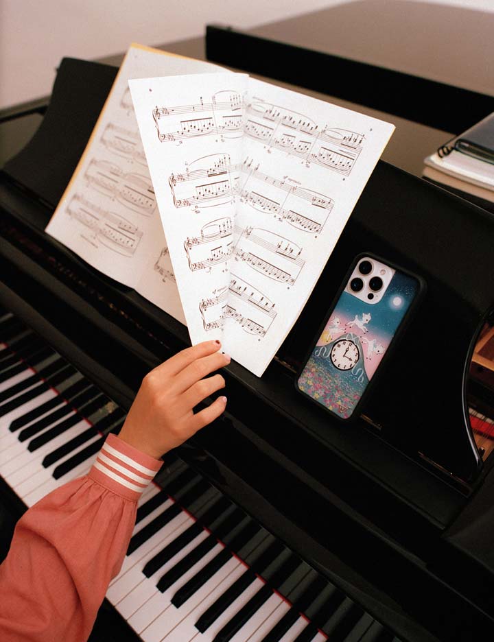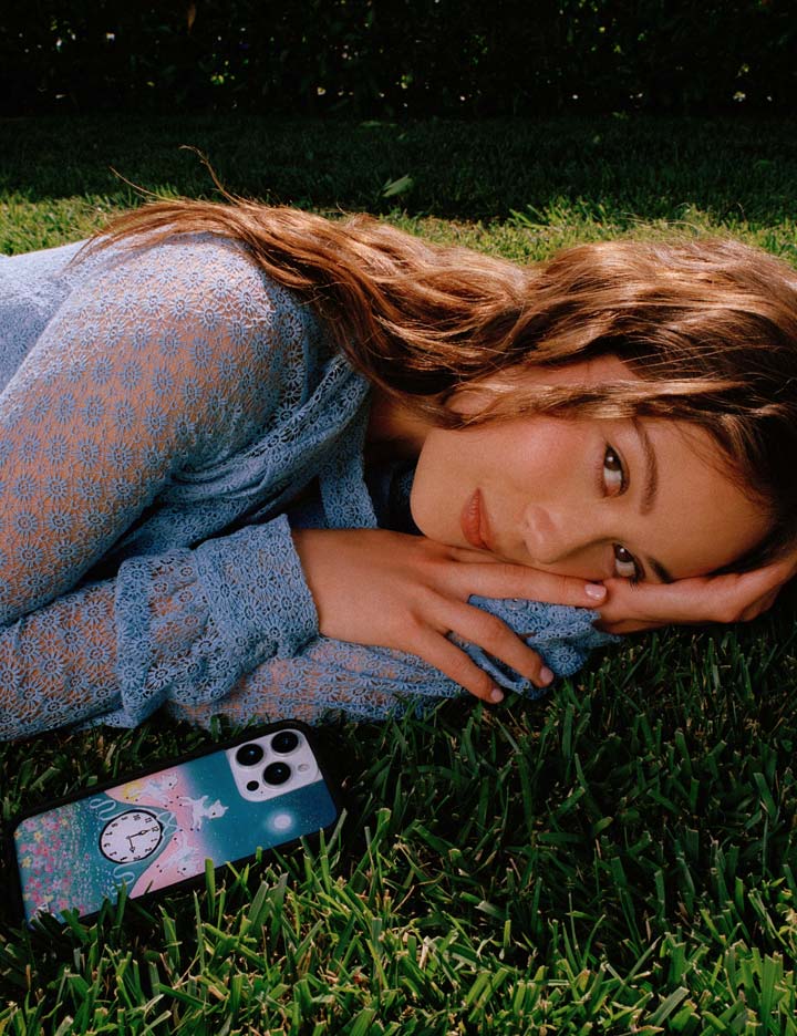 We are so excited about our Laufey iPhone case. in collaboration with musician Laufey??known for her timeless blend of jazz and classic pop??this design brings her soft. nostalgic world to life. Featuring three lambs leaping over a clock decorated with a bright blue bow. under starry skies and surrounded by pastel blooms. it captures a magical moment between dusk and dawn. This limited edition case is the perfect silver lining.