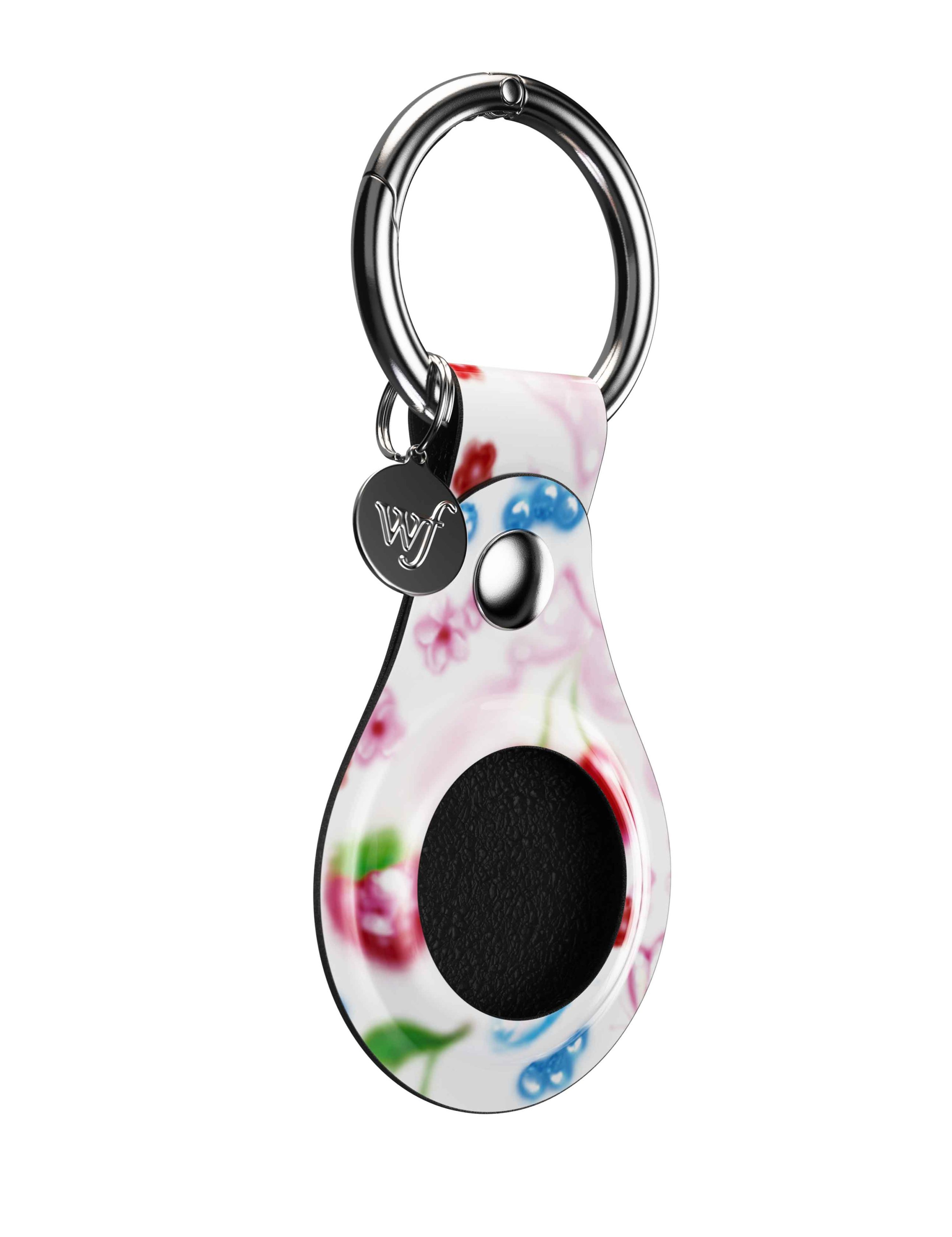 Our Sweet Cherries AirTag Keychain was thoughtfully designed for the girls who are always losing their keys. This keychain fits snugly over your AirTag. with a metal snap button. so you don’t need to worry about it falling out. Our fruity airbrush print covers this shiny white keychain. AirTag sold separately.